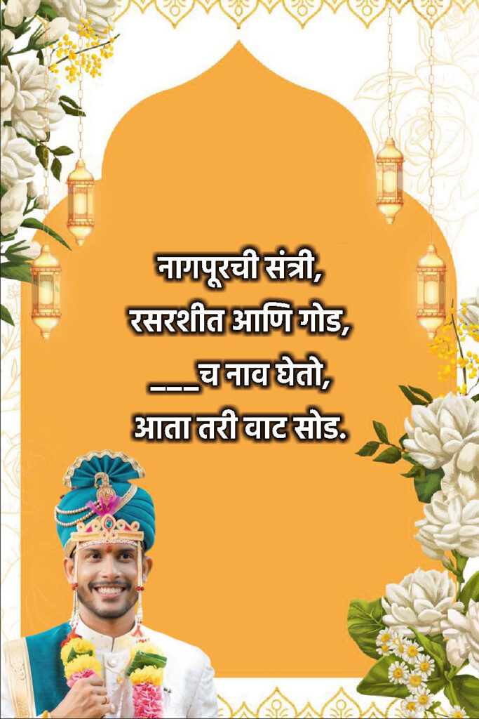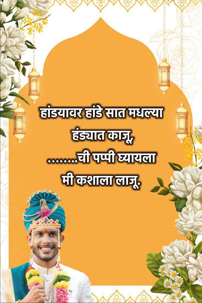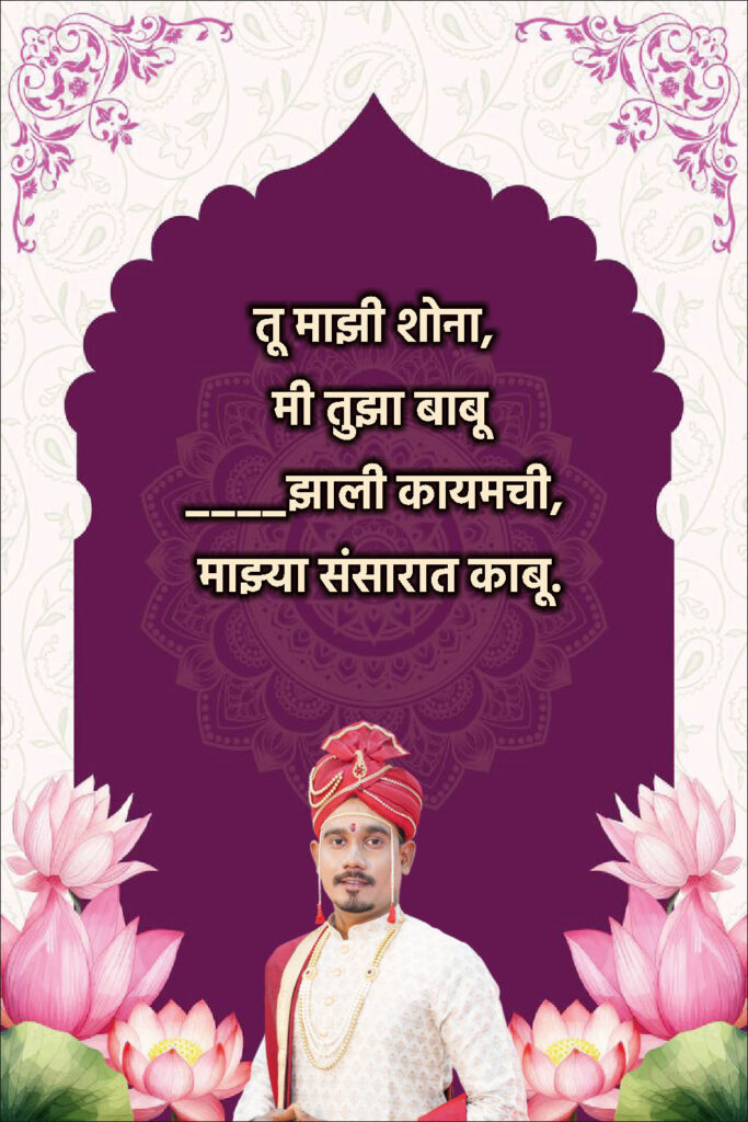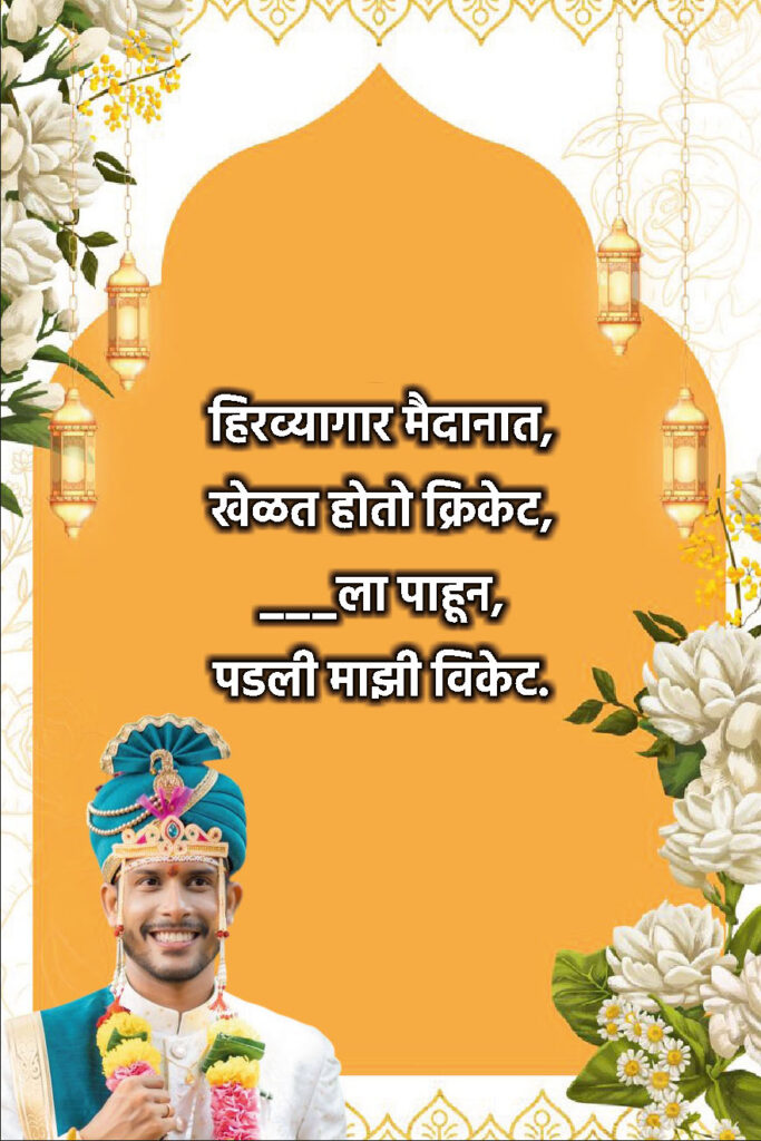 Ukhane for Groom in Marathi एकत्र केले आहेत — जे तुम्ही लग्नात, Instagram caption मध्ये किंवा status म्हणूनही वापरू शकता!